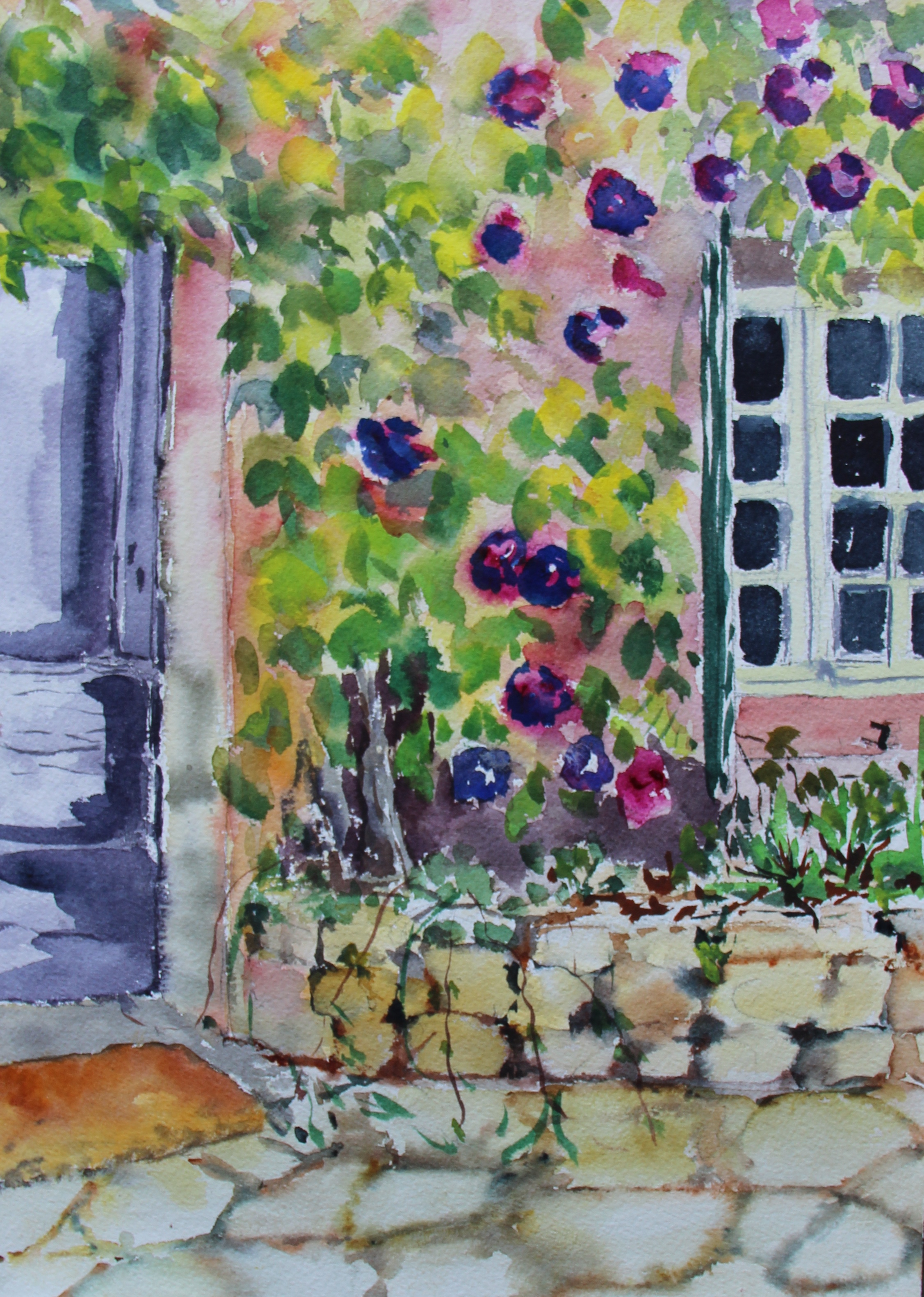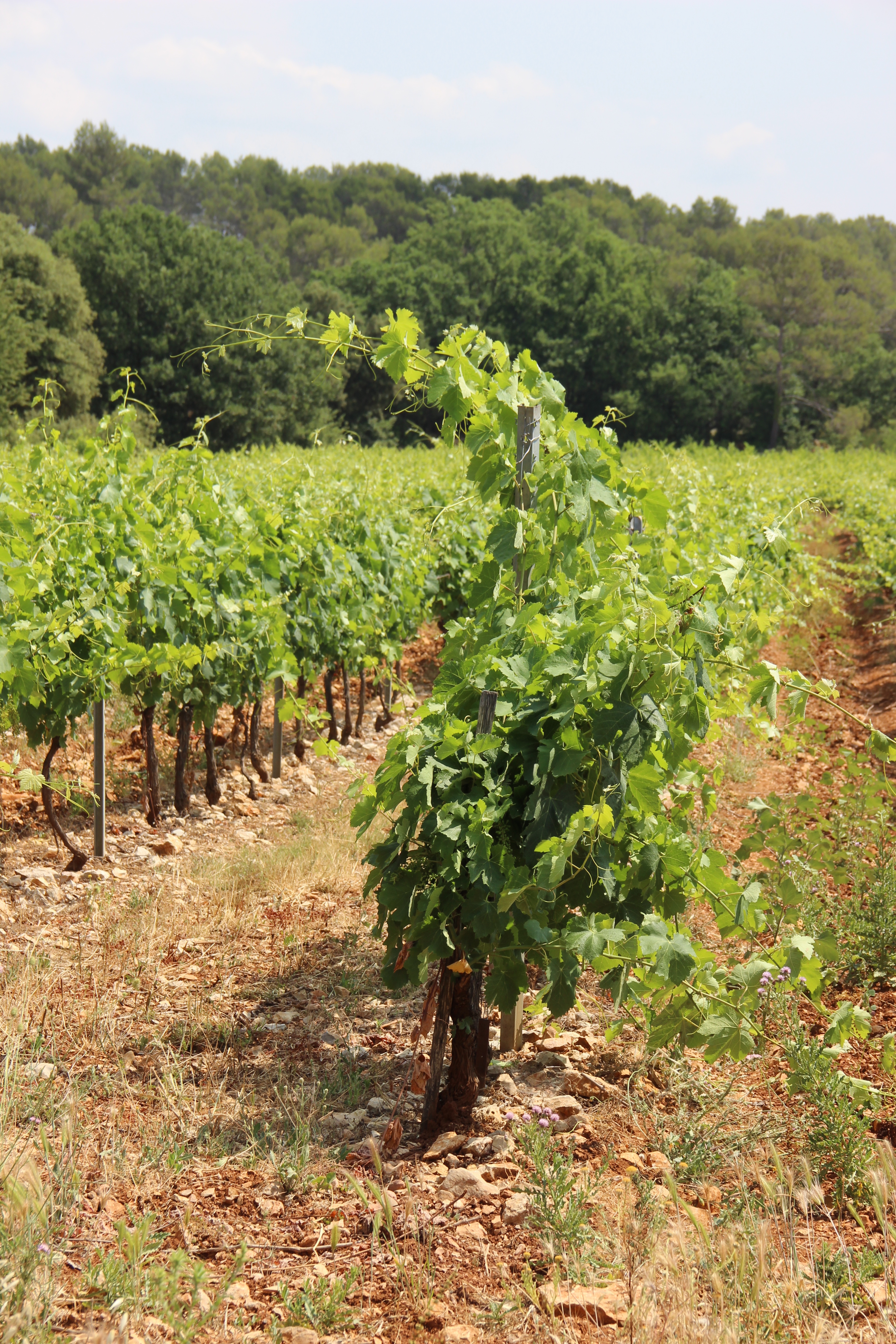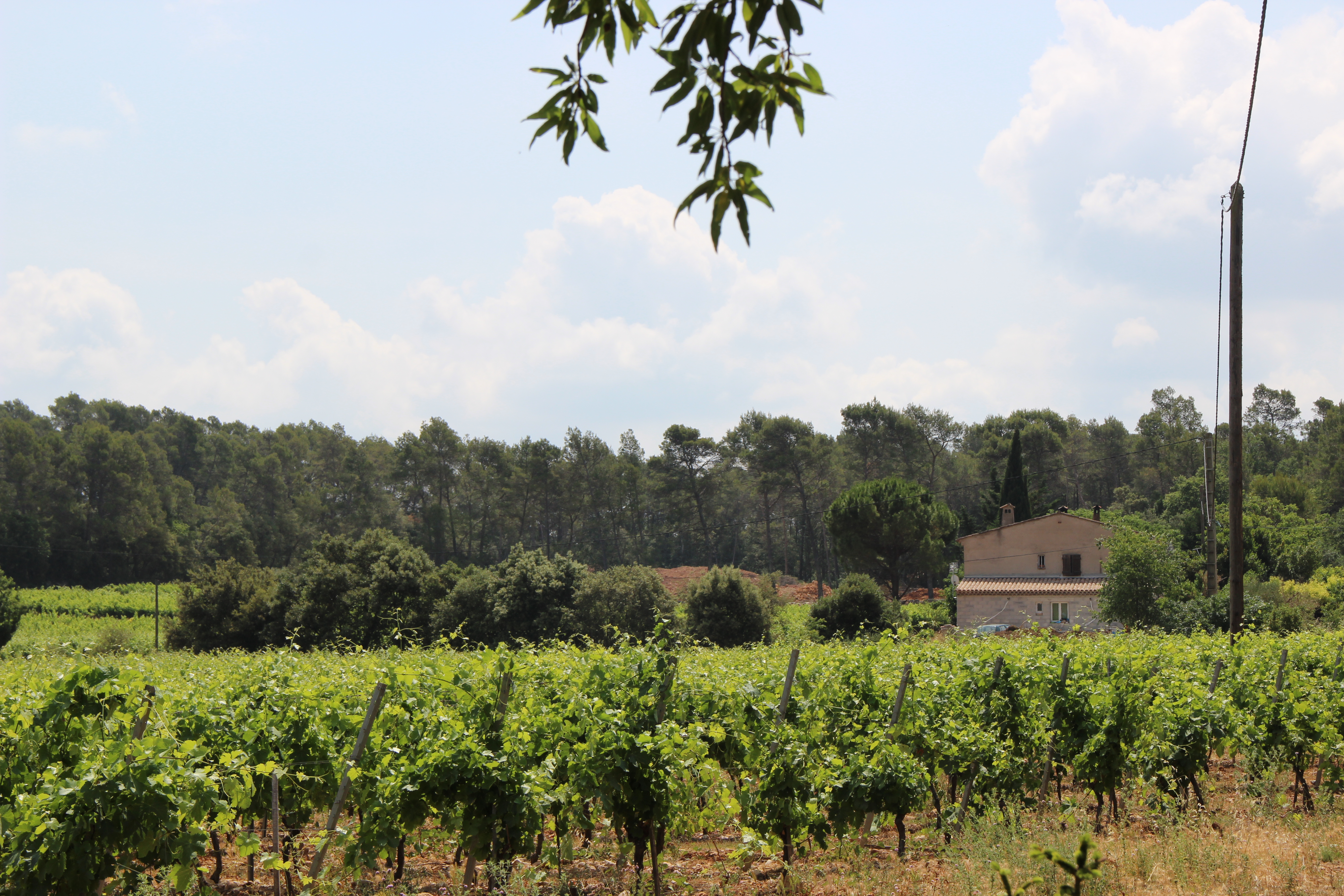 As they say in those shows ‘….and are in no particular order, so these pictures are in no particular order. I took the photographs of the vines last night, painted the front of the house the day before yesterday.Actually this is the view we painted today. A farmhouse in Provence, I will put on our paintings tomorrow.Jut can’t resist the happy movement of the vines.This is our market lunch. Fougasse, tapenade, chèvre frais, olives noire et vert, tomate a l’ancienne, poulet roti et pasteque. Pas mal pour un déjeuner sur la terasse!!And the market, at least the clothes part as busy as ever.