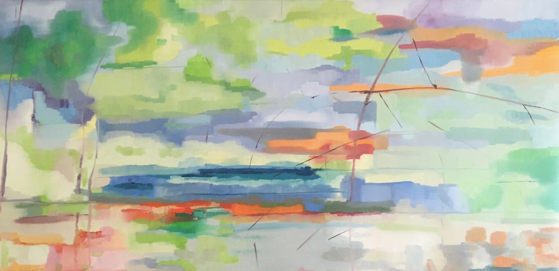 Working hard and having fun. I don’t know if any of you remember my watercolour abstractions of the River Loup that I painted last year. This year I am working on the water colours and changing them to oil on linen. It is quite hard and I keep questioning myself but the out come seems quite jolly.
