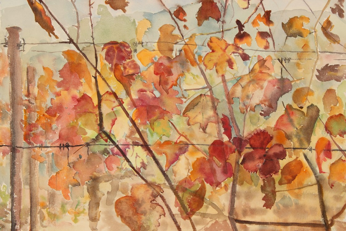 I just managed to finish this painting as the vineyard workers were making their way up the hill slowly but surely pruning the vines ready for the winter and the new vines to come in the spring.