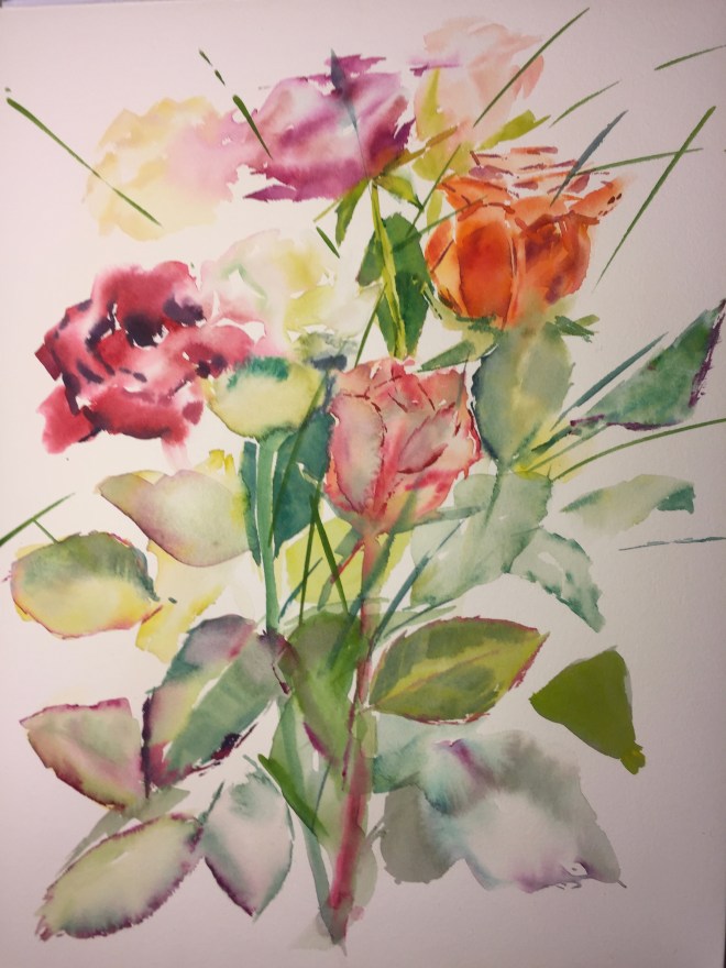 Every day this week I have been painting roses it is part of an excerise I set my self to stop myself thinking about world politics. I now know what I want to do to make a large painting of roses and I am very excited, I hope it will look as lovely on paper as it does in my mind. Who knows.