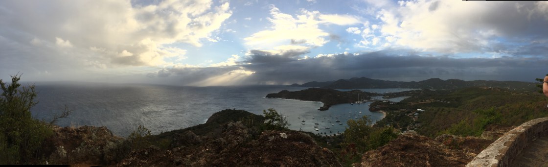 Shirely’s Heights waiting for the sun to go down whilst listening to the steel band. Brilliant!