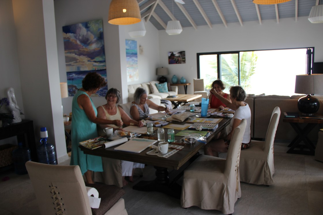 Sunday our first day we went over water colour techiniques in the great space of our living room/diner/kitchen.