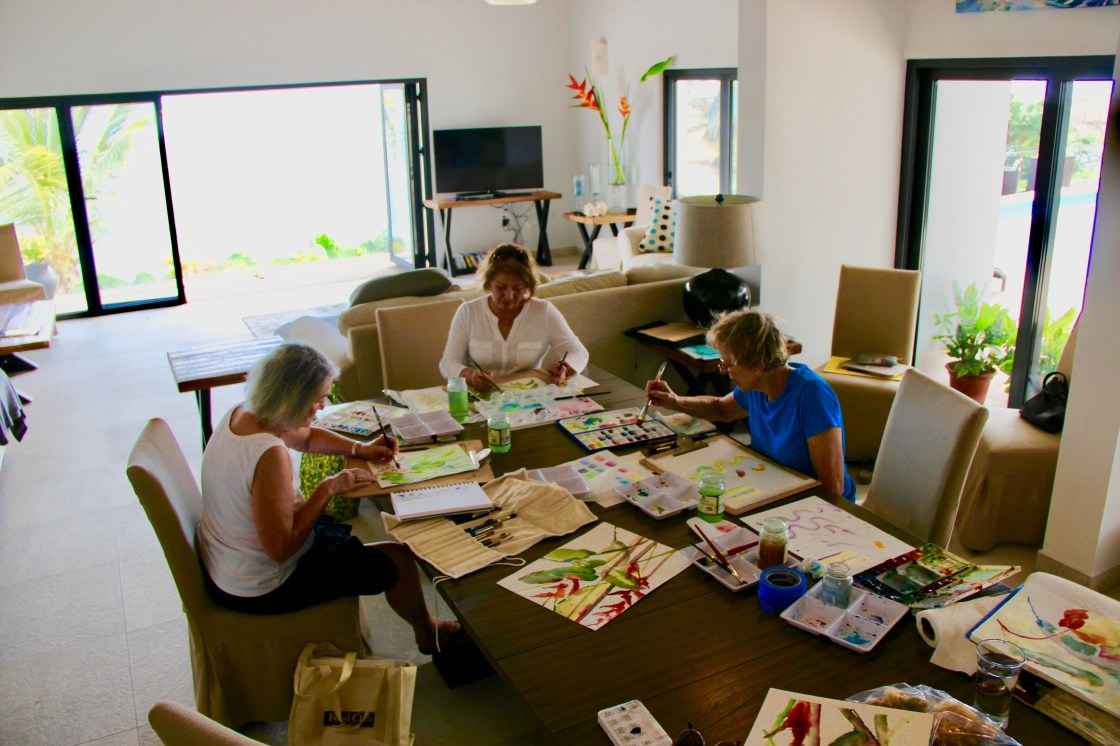 Thirty odd years ago there used to be a lot of rain forest on this pretty island now so much of it has been cut down but there are still magical little pockets left. Here we are in Sallie’s garden painting away.