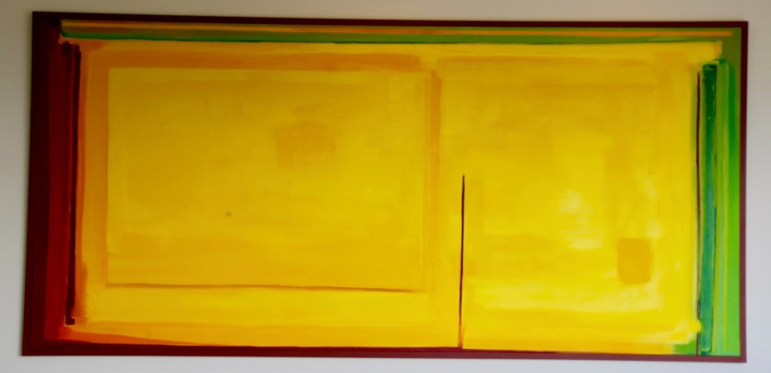 I haven’t seen this painting for quite a while now. I called it Brave Space, mainly because I felt quite brave painting such a huge canvas 180 c x 300 cm. It takes up alot of space, but is so sunny to see. I love painting huge canvasses and Neil and Tiziana have happily called Brave Space, Reg. A very fitting name I think!