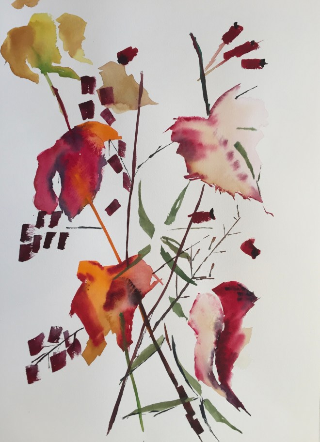 I painted this slightly abstracted painting of leaves when I was ill in bed a few years ago. It isn’t very easy painting in bed!