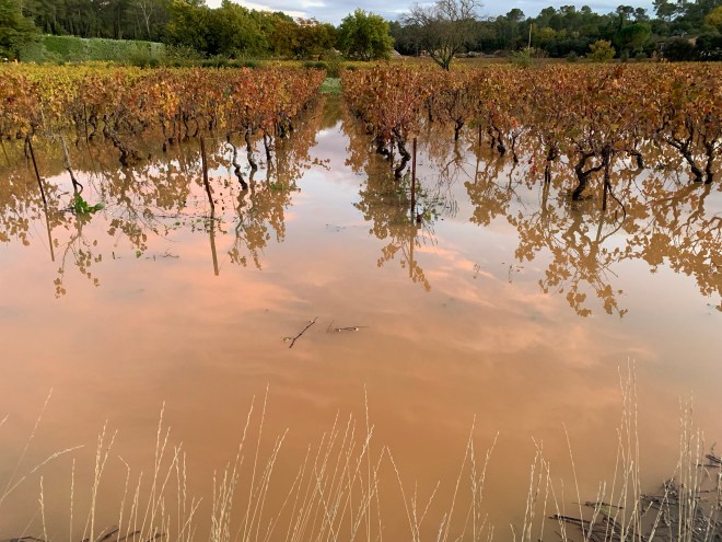 It has cleared a lot now. The rain has sunk into the earth and the skies adorn the water in pastel hues. I see the passing clouds ripple in the wind whilst Tilly our little black dog dumps sticks at my feet insistant that I throw them for her.This next lovely piece of writing is by my dearest friend Alison who thought it might help me get my blog done and of course she was right and of course I love it. So for your delectation here it is!I woke to a quiet morning and it took me a moment to realise that the drumming of rain had finally stopped. Opening the curtains revealed great sheets of still water leveling out the contours of the vineyards. The smooth flood water was opaque with suspended mud and reflected the bright sky that was clearing after days of clouds and storms.