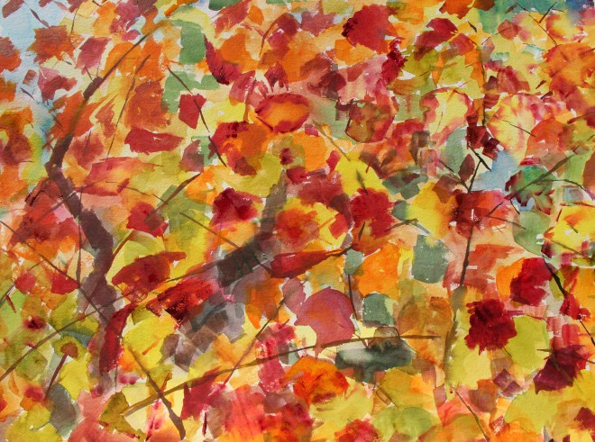 My clothes were still hanging up to dry after a session of digging trenches outside in the downpour in an attempt to divert the deluge from the barn and outbuildings. We had been confined to home for three days sa roads were impassable and it was unwise to venture forth. It proved to be a productive time in the end, providing a welcome chance to focus on a new commission and temporarily let go of the other jobs that required me to be out and about. It’s been a very intense and emotional few months and getting back to my paints was a balm to the soul, a reminder of what makes me happy, it started the juices flowing again for planning more Paint Provence trips and brought a wonderful sense of being reconnected t what I love and enjoy. Immersing myself in the canvas helped to re-establish some perspective after what has been probably one of the most difficult periods of my life. Gradually a new (plan?) structure is emerging and I can start to see the wood for the trees. Painting is my very best therapy!