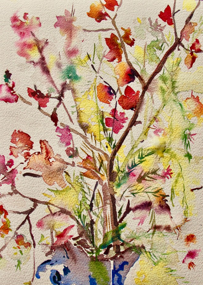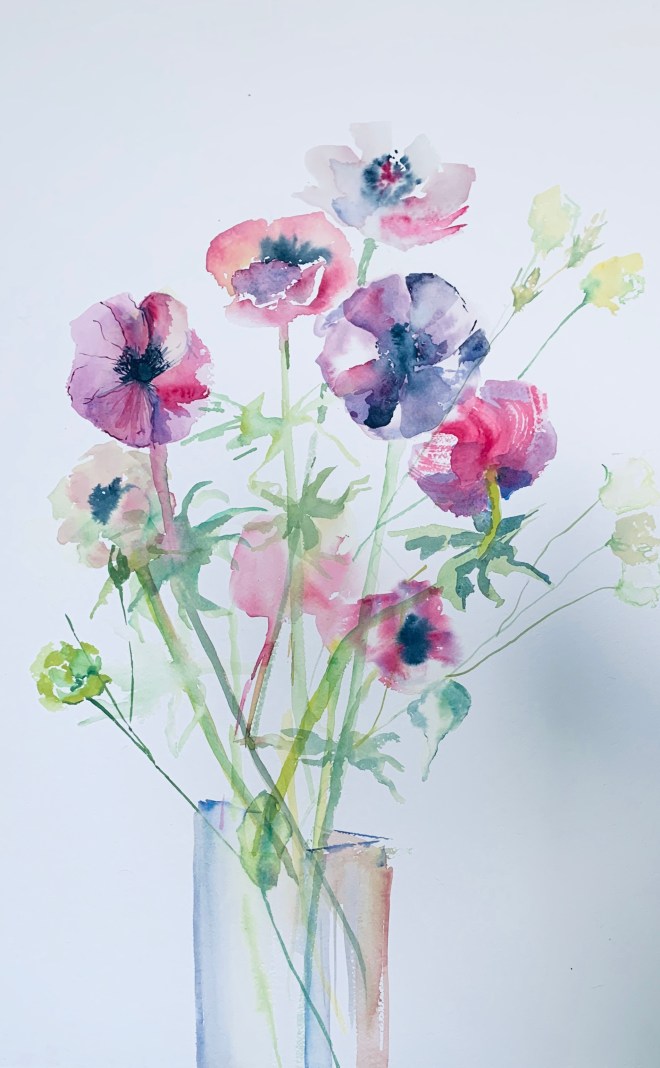 I am not sure whether or not to leave the painting as finished or to add one or two more anemones as there are more in the vase.