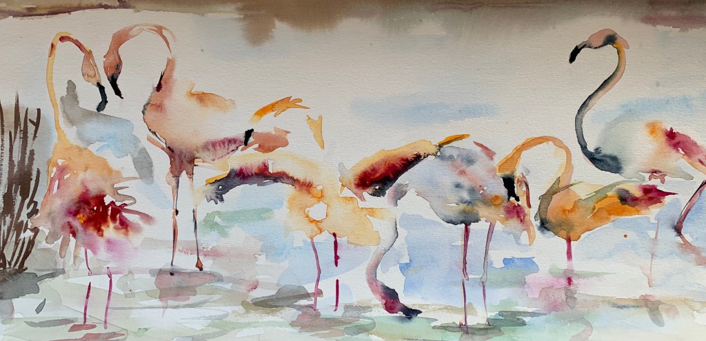 It is a wonderful time of year to visit the Camargue, not too many tourists, crisp and bright and sunny. Perfect for painting and picnics and walks along the canal. Arles is not far away either, the roman arena, the musee de Van Gogh, the beautiful bridge over the extra-ordinary river Rhone, which spreads itself into so many estuaries that create the salt marshes of the Camargue, Which also invites an array of wild life condensed into one small area. A protected area, thank goodness. If you haven’t visited the Camargue yet, then I think it is time you do, of course if you can.
