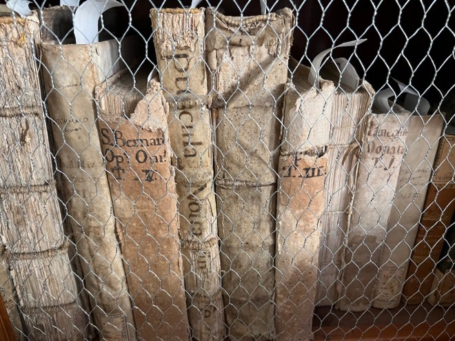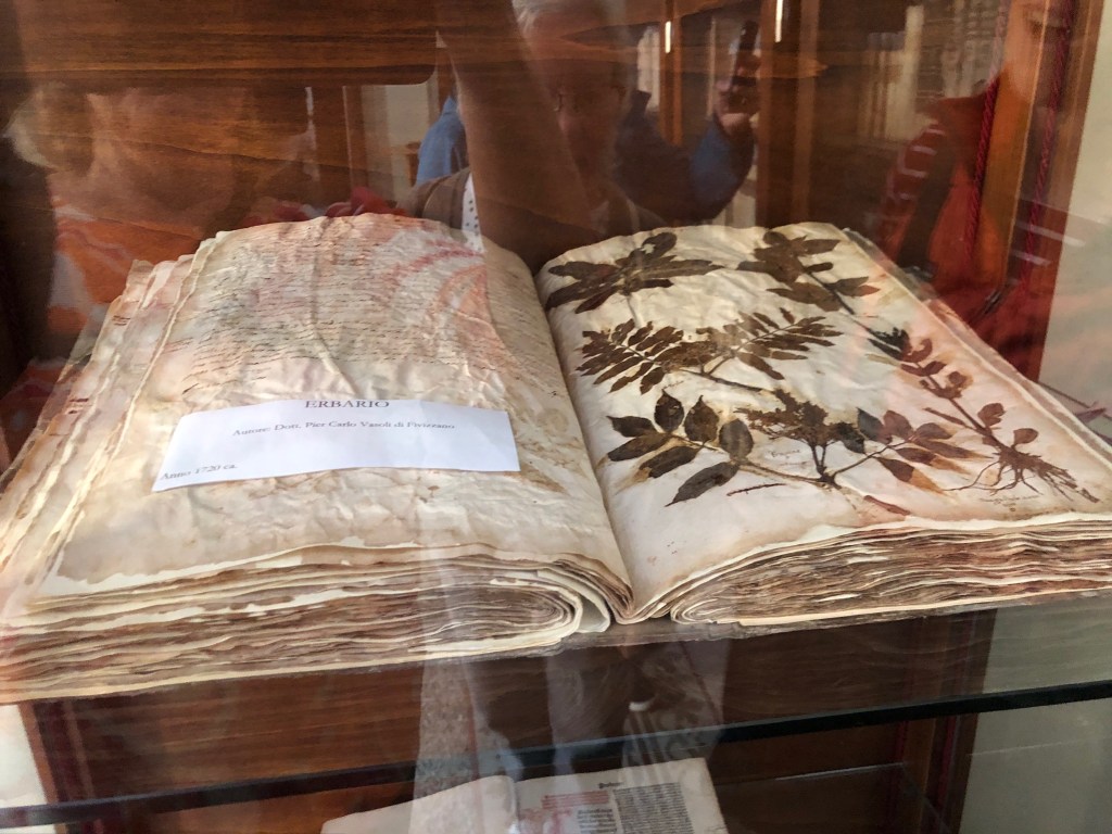 The view of Villa Medici from the garden, just a few minutes to walk up the cobbled lane into the center of town, where we were welcomed and looked after so kindly by everyone.βGuiseppe took us to the ancient library, where students are still allowed to used ancient hand written hand made books as reference books. How trusting.