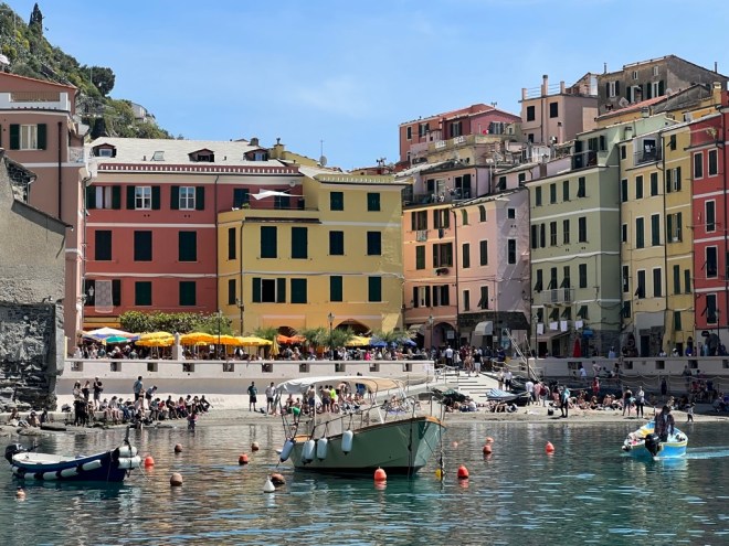 We hired Popeye for the day, a little wooden motor boat owned by Eduardo, who was perfectly delightful and took us from Monterosso to Vernazza, past Corniglia and Manarola to Riomaggiore. So perfect to see from the sea and far more difficult to navigate by train and feet. There are so many tourists it can feel quite overwhelming. But we did have a lot of fun!