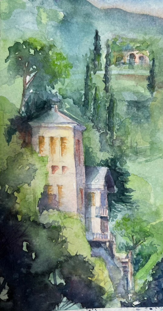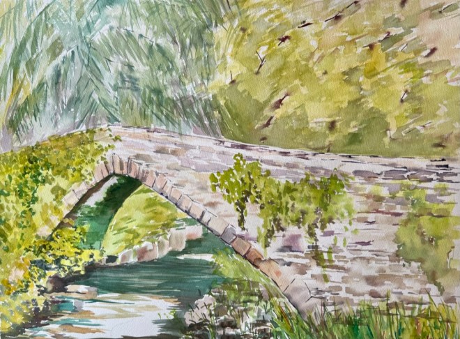 A painting of the bridge down the lane from our Villa Medici, Fivizzano by me