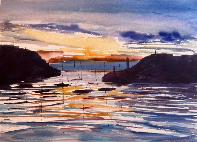 Home from Italy just to prepare for my art workshop in Mallorca, no wonder I was tired by June! I drove from Lorgues to Barcelona and took the ferry to Palma. We had such a fun trip, we had a villa with a sea view over the Port of Soller, the sunrises and sun sets were magical. We painted in Valledemossa, Fornalutx and other pretty villages.