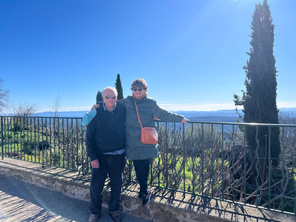 We started to have sunny days again last week, so David and I visited one of our favourite places for a day out in the sun and a yummy meal. Tourtour is just 20 minutes drive from us, it is up a windy hill, the narrow road twists by olives groves and long views over the mountain tops to Aix-en-Provence and beyond. It is an unspoiled and unique medieval village. Worth a visit if you are ever in our area of Provence.